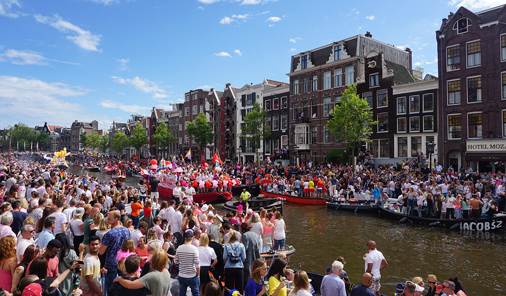 毎年8月上旬に開催されるゲイ・プライドのパレード。約5キロほどの距離を音楽やダンスありのパレード船が何十隻〜百何隻も通過します。その区間はどこもかしこも観覧者で賑わいます。