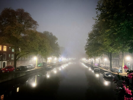 アムステルダムは霧が多く濃霧注意報なども頻繁に発令されます。急に寒くなった日の早朝など運河は真っ白で幻想的な風景を見ることができます。