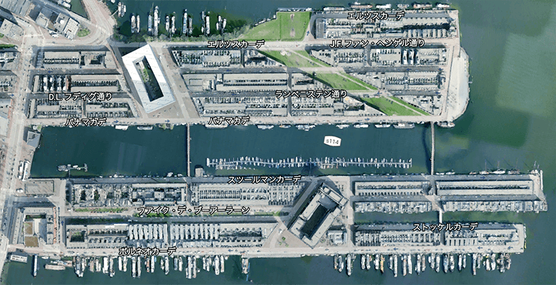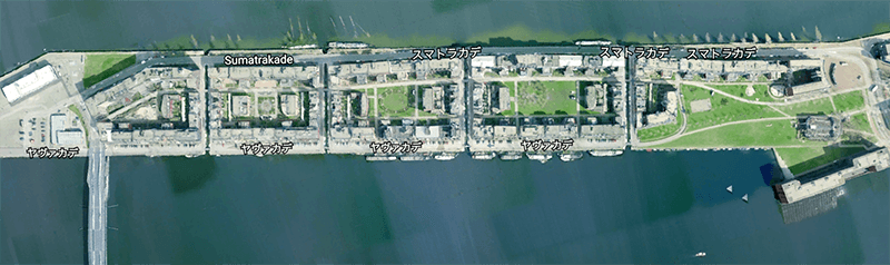 埠頭はKNSM(ケーエヌエスエム島)、JAVA(ヤファ島)、Borneo(ボルネオ島)、Sporenburg(スポレンブルク島)と4つにエリア分けされました。