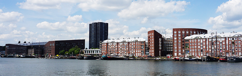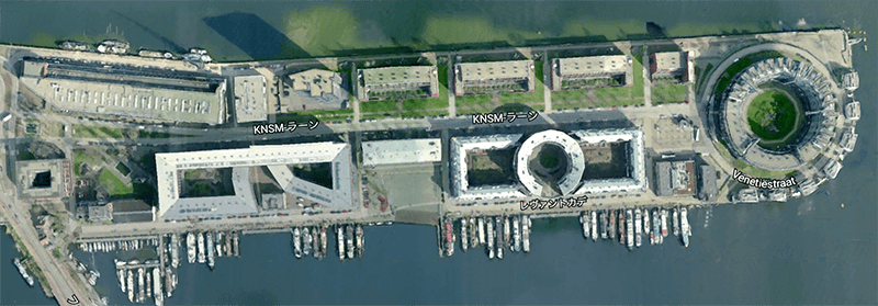 アムステルダム中央駅から東に2kmに位置するアムステルダム東部港湾地区には4つの人工島(埋立地)があります。