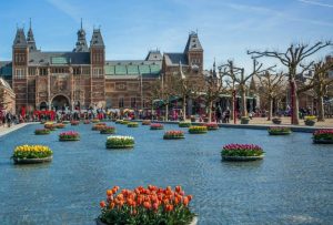 毎年4月になると、アムステルダム市内各地にチューリップが展示されます。