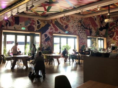 アートホールのKunsthal KAdEを鑑賞した後は、併設しているカーデカフェ(KAdECafé)で一休み。店内の壁と天井一面がグラフィックアートになっているオシャレカフェです。芸術鑑賞の余韻に浸るのにピッタリのお店です。