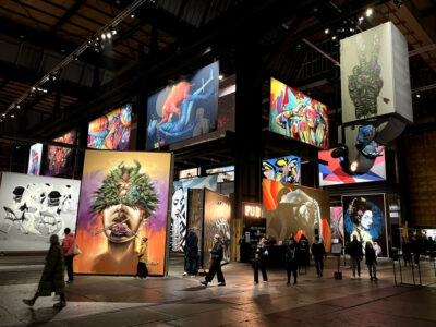 8000㎡もある巨大な倉庫に数々の大きなグラフティーが展示されている空間は、仮想空間のネオン街のような印象です。大きな空間と作品に囲まれる、今まで体感したことのないサイズ感は現実世界でのバーチャルのような風景でした。