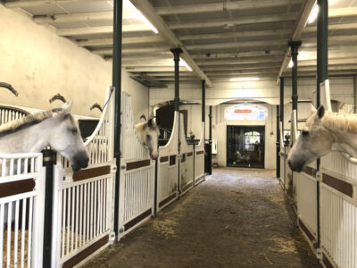 乗馬学校の歴史を学んだり、馬房を見学したり、騎手のコスプレコーナーなどもあります。2階のお洒落カフェからはコーヒーを飲みながら乗馬見学もできるようになっていますが、厩舎内は動物の匂いが篭ってるのでお茶タイムには適してなかったです。