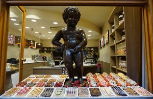 1945年にゴディバ1号店がグランプラスにオープンし、一口サイズの美しいチョコレートが販売されたことから、チョコが贈り物として定着しはじめたといわれています。