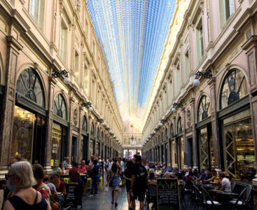 ガラス天井のショッピングアーケードギャルリー・サンチュベール(Galeries Royales Saint-Hubert)は1847年にベルギー建築家ジャン・ピエールによって設計された美しいアーケードです。