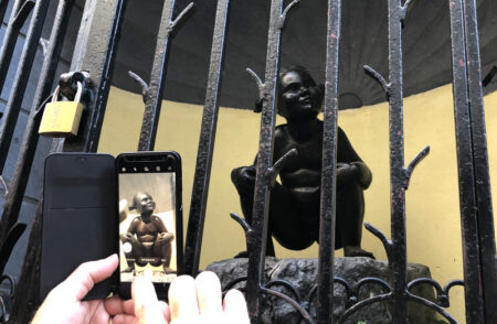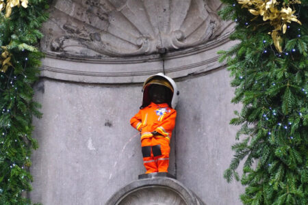 裸の姿でおしっこをする小便小僧(Manneken Pis)の噴水はブリュッセルの有名なシンボルです。