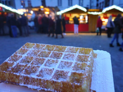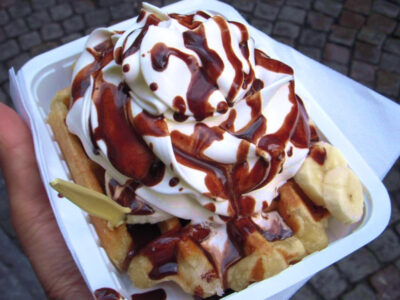 見た目と食感が違った2タイプのワッフルは、どちらも焼きたてが最高に美味しいです。アチコチにワッフル屋さんが出店しているので食べ歩きしてみてください。