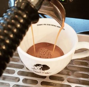 10〜50秒間お湯に浸したコーヒー粉を圧力をかけてフィルターし抽出されたコーヒー。