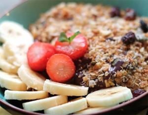 朝食にコーヒーとアサイ・ボールで栄養満点です。
