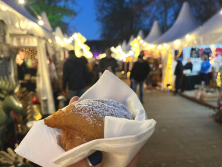 会場に入ってすぐに買ったオリボール(オランダの冬の定番ドーナツ)。揚げたてでふわふわ。これを食べると年末感が一気に増します。