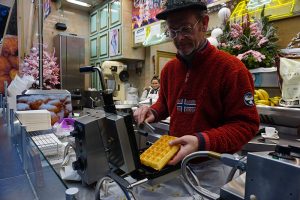 ベルギーワッフルのお店ももちろんあります。ワッフルは焼きたてがオススメです!