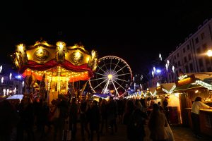 聖カトリーヌ広場には巨大観覧車が仮設されマーケットや市街地を一望できます。景色を楽しむには夕焼け頃が綺麗だと思います。