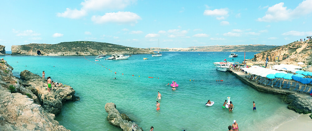 この2つの島の間には小さな無人島のコミノ島(Comino)があり、コミノ島のビーチは透明度の高い海で有名なマルタ共和国で最も美しいビーチといわれています。