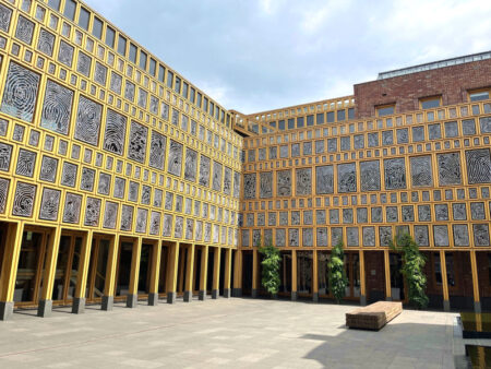 まるで指紋認証のようなファサードの建物は、本当の指紋からデザインされているから驚きです。2264個の市民の指紋からなるフレームワークのファサードは圧巻です。