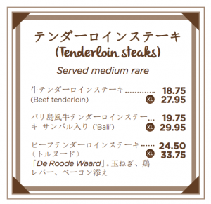 カフェだった当時にステーキメニューを始めたところ、それがヒットし、以来ステーキといえばLoetjeとして知れ渡ったそうです。現在ではビリヤード台は無くなってしまいましたが、theステーキ屋さんとしてオランダ各地に店舗を展開しています。