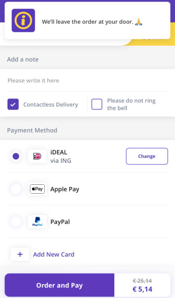 支払い方法は「iDeal、Applepay、paypal」などから選べます。また配送先についたら玄関前に置いていくなどのオプションも選べました。