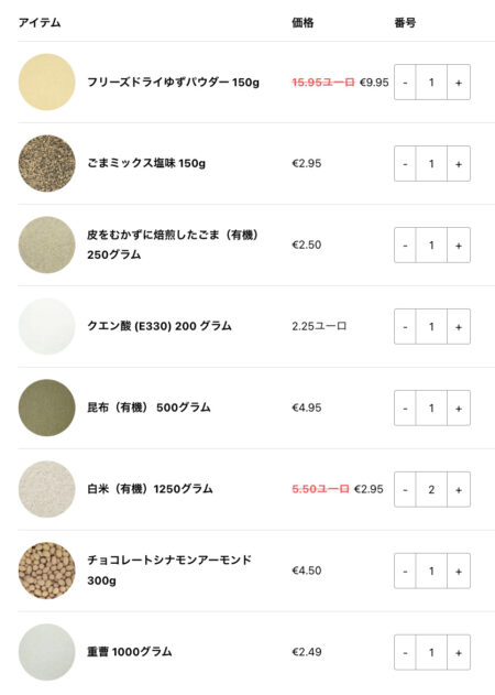 現在は取り扱いがなくなってしまったのですが、ごま塩(sesam mix gezouten)の販売がありました。