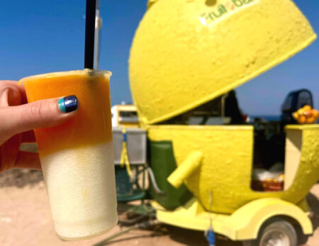 ビーチ近くのジューススタンドで飲んだ、オレンジジュース×レモンシャーベットのミックスが神。日差しで疲れた体に沁み渡るビタミン爆弾!