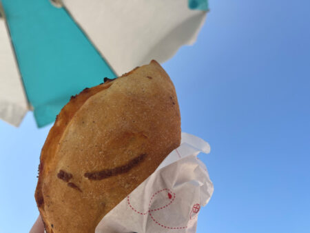 英語が全く通じなかったけど、適当に買ったチーズ入りパンが美味しすぎた!1個1〜2ユーロで買えるから、ビーチピクニックにおすすめ。