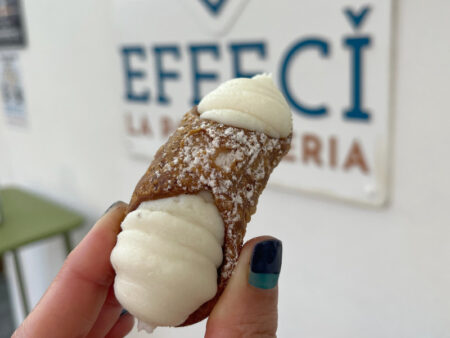 シチリア名物のカノーリは、旅中に必ず食べてほしいスイーツ。手のひらより大きいジャンボサイズまであり、甘党にはたまらない逸品!