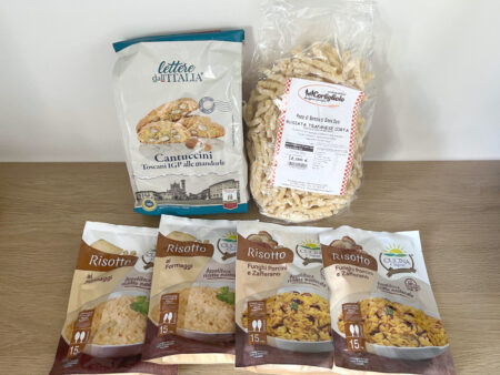 とにかくパスタが安かった。ほかにも、ドーナツ型のリングパスタ、シチリア産の塩、オリーブオイル、バルサミコ酢、ユニークなお菓子など…気になるものはいっぱい!