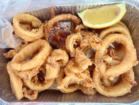 パン屋さんやビーチサイドのバー、または路地にある揚げ物屋さんでカラマリ(イカフライ)を買うのは海バケーションの必須アイテム。1つって注文すると、だいたい1杯ぶんの山盛り。ビーチで食べるランチにぴったり!