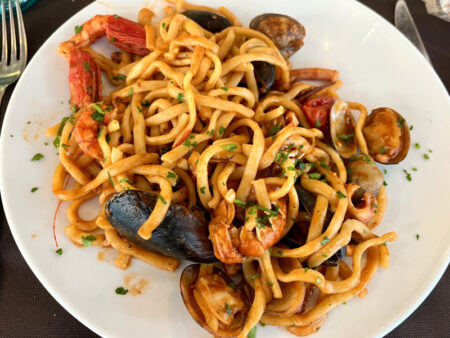 もちもちの自家製パスタと新鮮なシーフードが楽しめる人気レストラン。ローカルワインも豊富で、スタッフのサービスも丁寧。落ち着いてディナーしたいときにおすすめ。