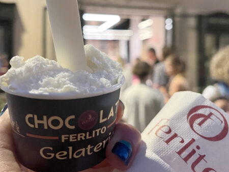 旅行中に新しくオープンしていたジェラート屋さん。なんとオープン記念で無料!カノーリ味のジェラートが衝撃的な美味しさでした。