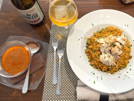 トラパニ名物の「魚介のクスクス」が楽しめる老舗レストラン。海鮮の旨みが凝縮されたスープをたっぷりかけて食べるこの料理、まさに鍋のシメ的なうまさでやみつきに。
