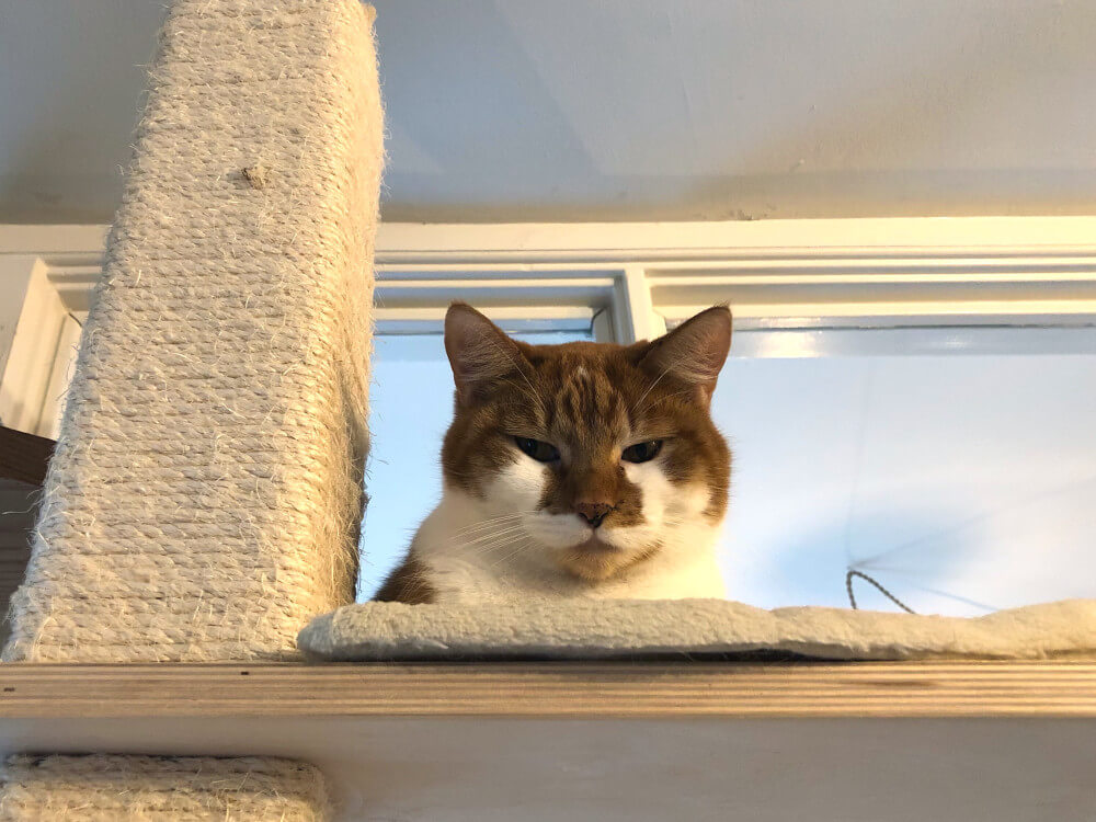 壁や天井のあちこちに猫さん用のタワーや通路が設置されており、そこを忍者のようにスルスルと動き回る姿を眺めているだけでもリフレッシュできました。