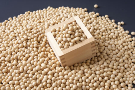 乾燥大豆を150度のオーブンで5〜7分、またはフライパンで5〜7分ほど空炒りします。