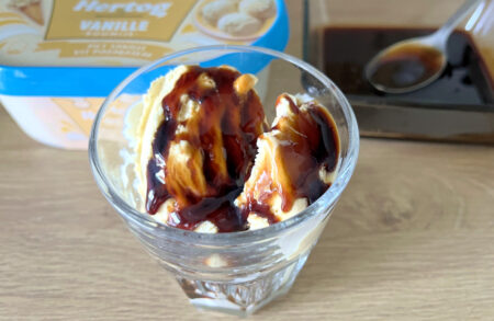 特売のバニラアイスにかければ黒蜜きな粉アイスも完成です。
