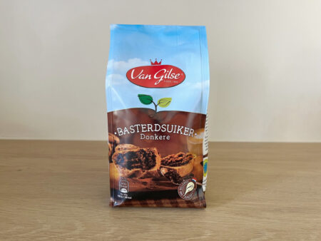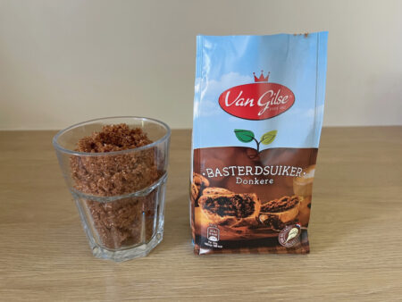 スーパーマーケットのお砂糖売り場にあるBastedsuiker Donkereが黒砂糖です。これがあれば和菓子定番の黒蜜が無限に生成できます。