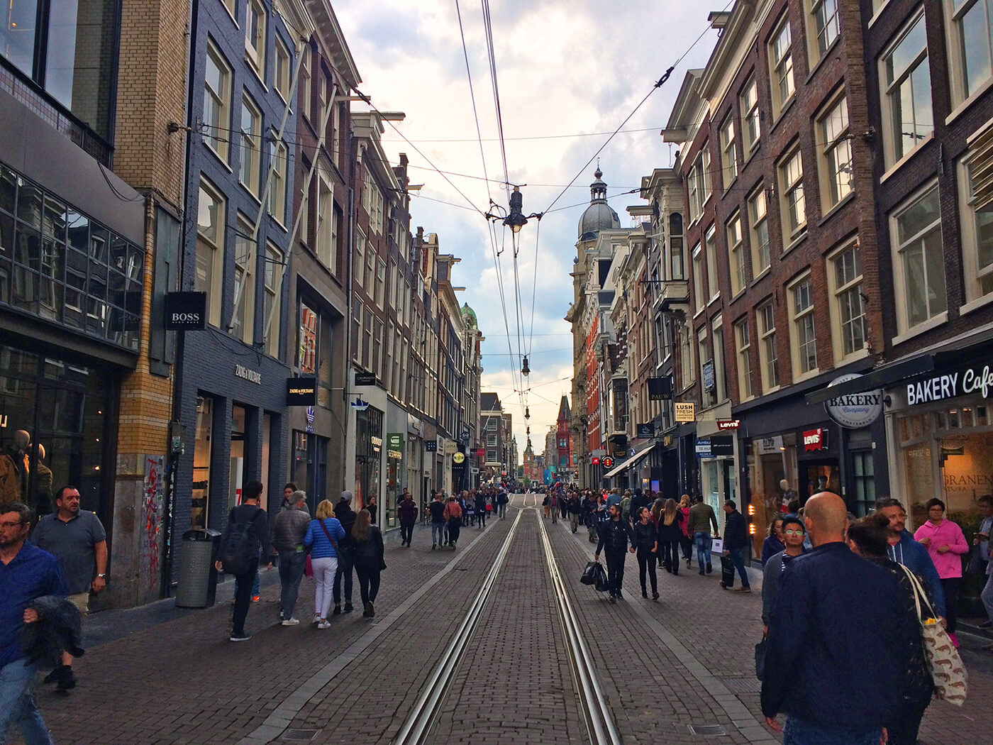 グラクテン・ゴルデルの南にあるLeidsestraat(ライツェ通り)は、アムステルダムの繁華街と、美術館の多いミュージアムプレインを結ぶ通りになっており、人通りが多いことから歩行者天国となっているショッピングストリートです。