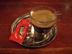 エスプレッソマシーンで抽出した濃いめのコーヒー