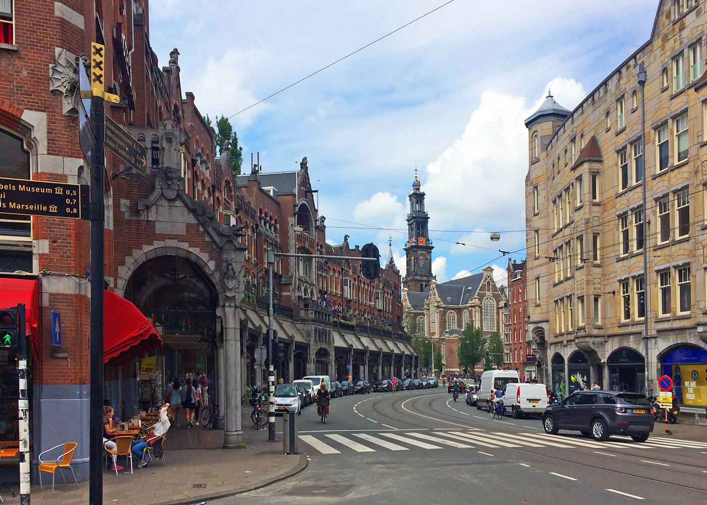 ラートハイス通りの西端にはWesterkerk(西教会)や、Anne Frank Huis(アンネフランクミュージアム)へアクセスするため、毎日多くの観光客が行き来する通りとなっています。