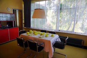 各部屋の大きな窓やバルコニーからは、(当時は)豊かな緑の景色を眺めることができ、また多くの光を室内に取り込めるように工夫されています。家具や照明器具などの多くもそのままの状態で保管されています。