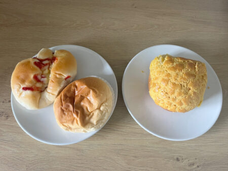 どれもふわふわの甘めのパン生地で、軽めの食感。ガチの職人パンとは違うけど、「懐かしい〜!」って気持ちになるタイプのパンたちでした。