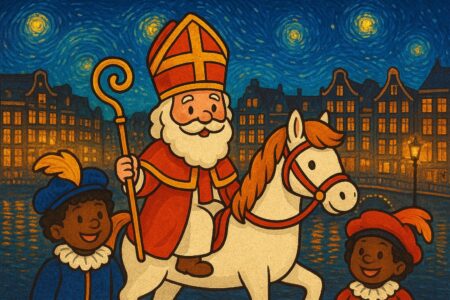 毎年11月に蒸気船に乗ってオランダへとやってくるシンタクラースさんは、オランダ滞在中の約1ヶ月間に各地の学校や病院を訪問し、12月6日にスペインに帰っていきます。
