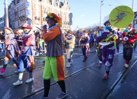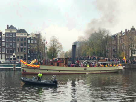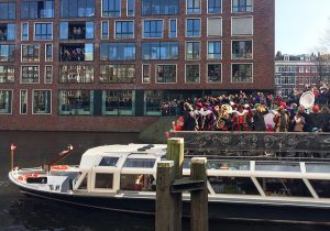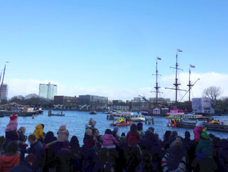 アムステルダムのシンタクラース・パレードは、お昼前に運河パレード、そして午後に路上パレードの2部構成です。