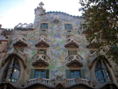 ジブリにでてくる巨神兵みないな骨格のテラスがあるカサ・バトリョはもともとは1887年に建てられたアパートですが、1906年にガウディによってリフォームされました。2005年に世界遺産に登録されています。