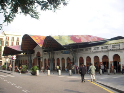 1997〜2001年の改装工事にてうねった大きな屋根が設置されました。この大屋根のカラフルなデザインはバルセロナを象徴するタイルデザインをイメージしたグラフィックとなっています。