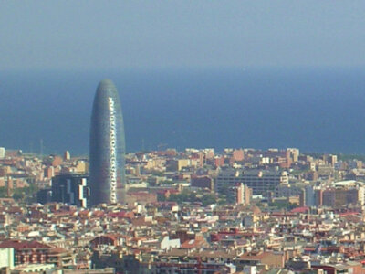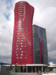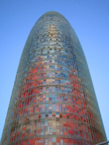 バルセロナのどこからでもその姿を見かける高さ144mの高層ビルのトーレ・アグバール。グエル公園からバルセロナを眺望するとピョコンと飛び出ている、異質感を感じる建物です。