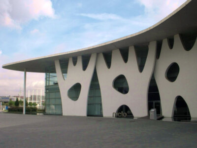 バルセロナ見本市会場(2006年)は当時の伊東建築を代表するデザインの壁が特徴的です。自然界の樹木をグラフィカルに表現した構造壁は、ガウディのデザイン論の影響を受けていたのかもしれません。