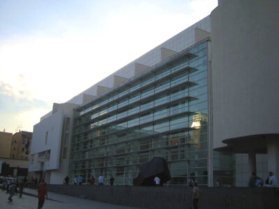 ゴシック様式の建物が多く集まる旧市街地の中にあるバルセロナ現代美術館(通称MACBA)は、そのモダンな建築が異世界感を放ち、旧市街から一気に時代が加速したかのように現代の様相へと導いてくれます。