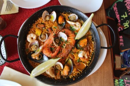 スペインに訪れたときは町の食堂やタパスでもパエリアを召し上がってみてください。食堂やタパスでは大きなパエリア鍋で作るので、海鮮出汁がより濃厚で風味がより豊かです。お皿に取り分けて提供されるので映えはないけれども確実に美味しいです。