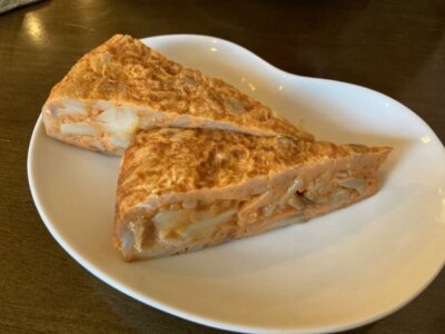 厚みのある卵焼きのトルティーヤ(Tortilla)はスペイン版オムレツでジャガイモや玉ねぎが入っています。ジャガイモがゴロゴロ入っているので卵料理というよりはジャガイモ料理に感じます。
