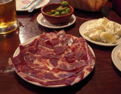 イベリコ、プロシュート、パルマハムと色々な呼び名がある生ハムですがハモンセラーノ(Jamón Serrano)がスペインで最もメジャーな生ハムです。