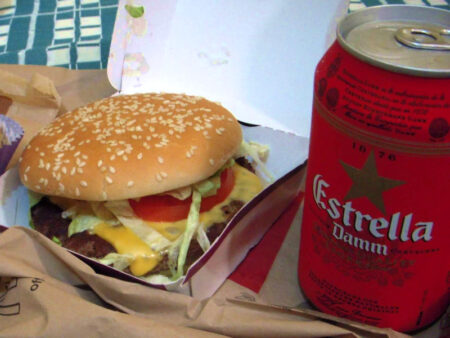 バルセロナのビールといえば真っ赤なパッケージに星印のエストレージャダム(Estrella damm)。苦味があるけどクセがないラガービールで、カタルーニャ地方の定番ビールです。